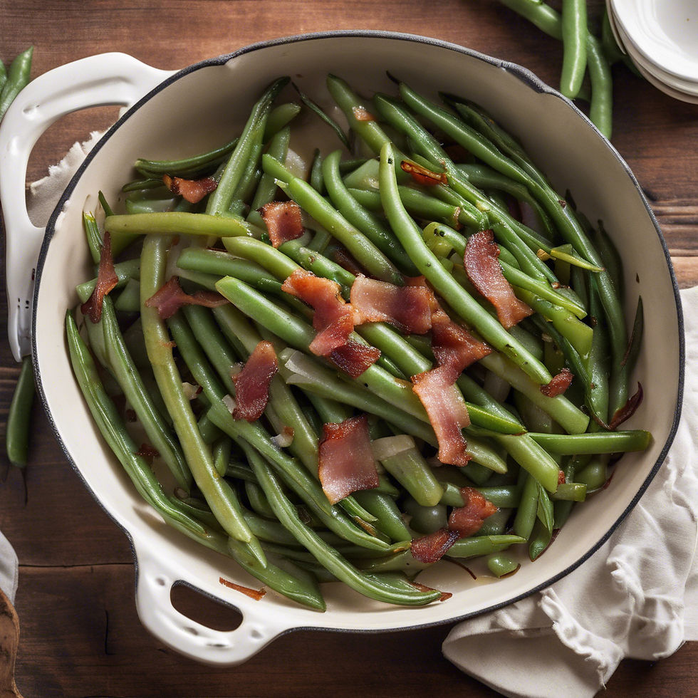 Pigs in a Blanket, Sauteed Green Beans with Bacon and Onion